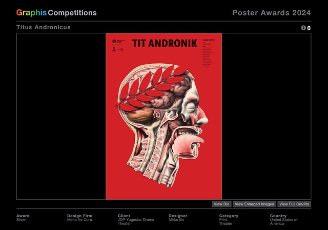 U žestokoj konkurenciji stotina dizajnerskih ostvarenja iz cijelog svijeta, na međunarodnom natjecanju Graphis Poster dvije su najprestižnije Platinum nagrade otišle u ruke hrvatskim dizajnerima. Jednom od 14 dodijeljenih “platinastih” nagrada okitio se renomirani zagrebački dizajnerski studio Šesnić&Turković, a drugom njujorški studio Mirko Ilić Corp. iza kojeg stoji cijenjeni grafički dizajner, politički ilustrator i ilustrator plakata Mirko Ilić. Oba nagrađena plakata ukrasit će stranice eminentnog godišnjaka “Graphis Poster Annual 2024”.