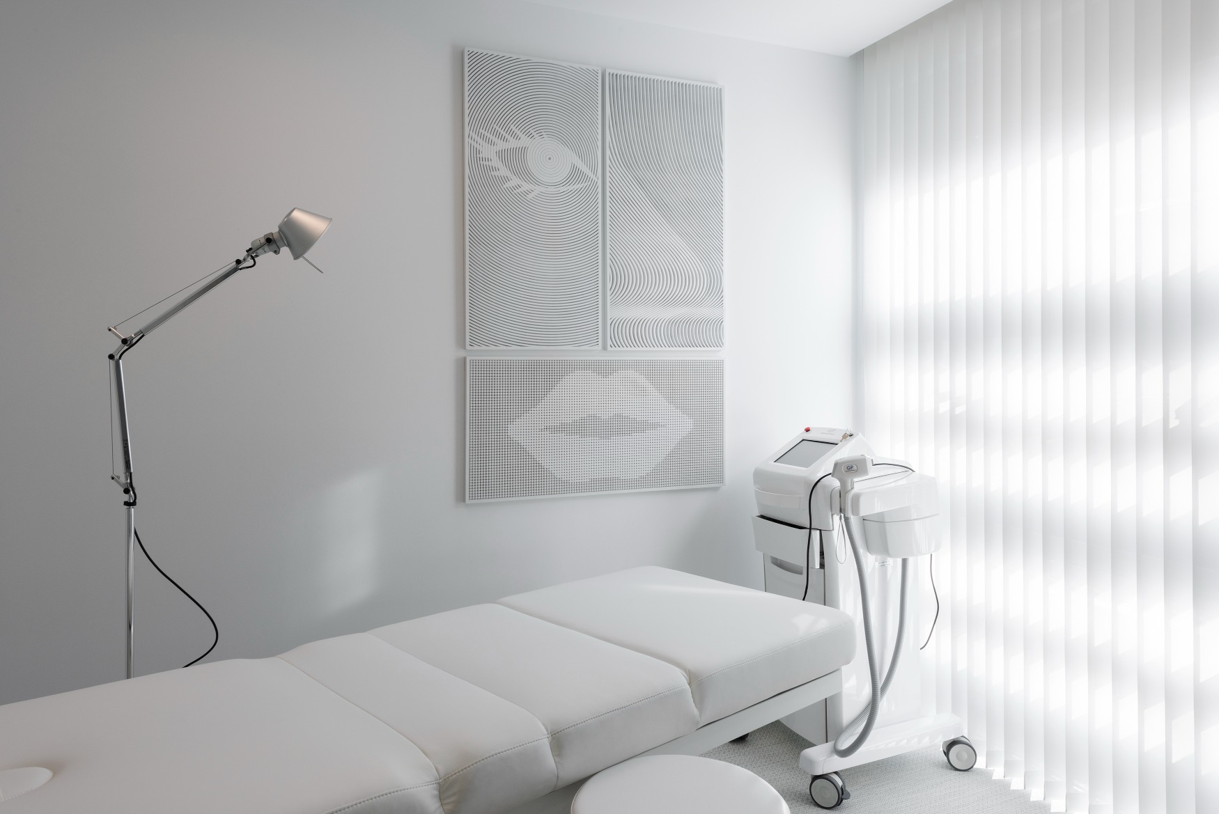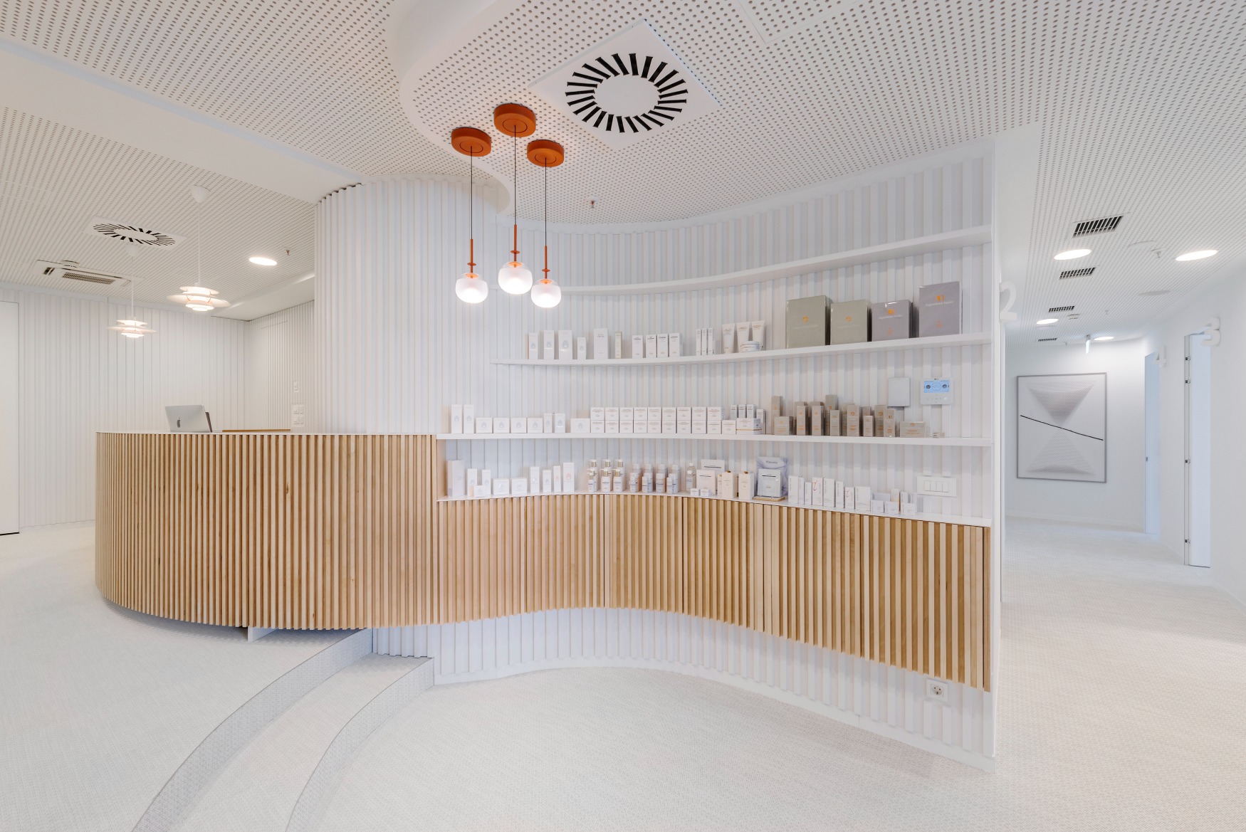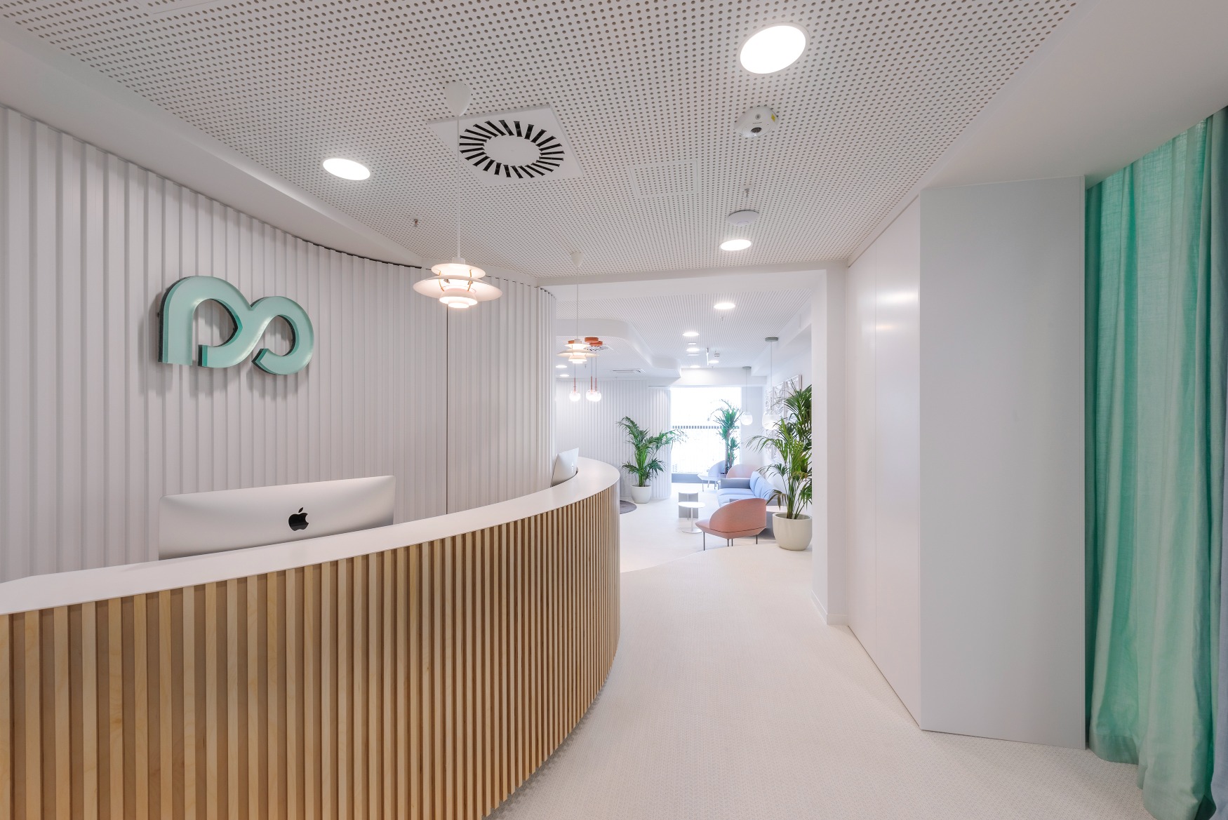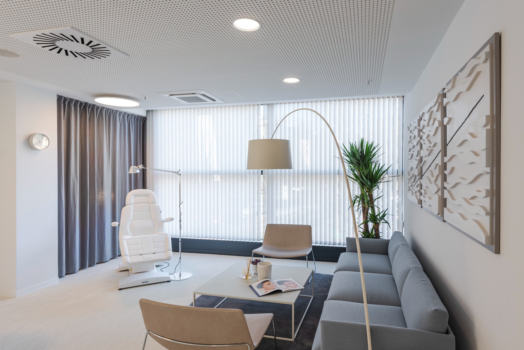 To je ostvareno prostornom organizacijom, organskim formama i odabirom materijala kojima se postiže ugoda prije svega, zadovoljavajući sve medicinske kriterije. Pretežno bijeli prostor daje osjećaj topline, a drveni elementi organske forme, grafizam teksturiranih zidova, podova, stropova, čak i prozora, kroz cijelu polikliniku kreiraju osjećaj mirnoće i elegancije.