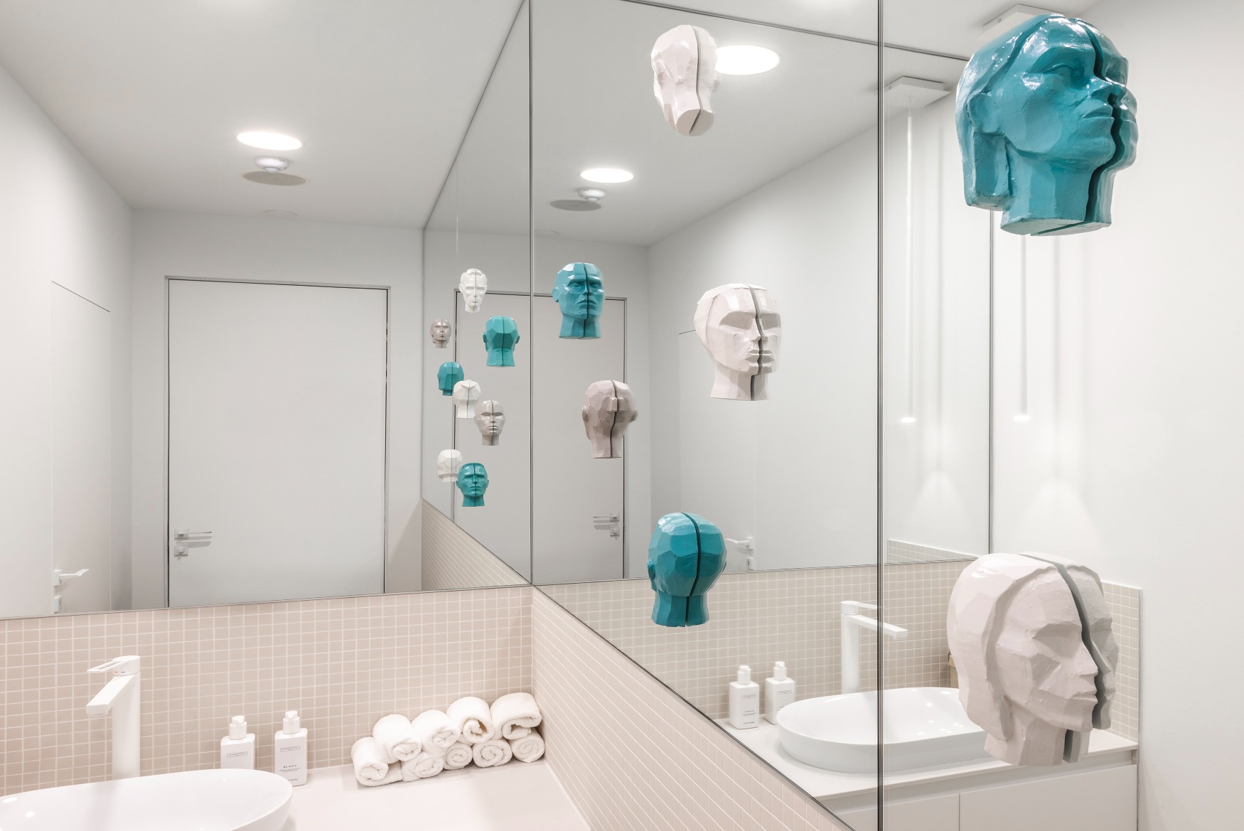 Umjetnine raspoređene po cijeloj poliklinici na apstraktan način ilustriraju pojedine segmente djelatnosti poliklinike, kroz ideju dizajnera iz studija Šesnić & Turković i realizaciju akademskih umjetnika Matije Plavčića i Vjerana Palijana, u suradnji s arhitektima.