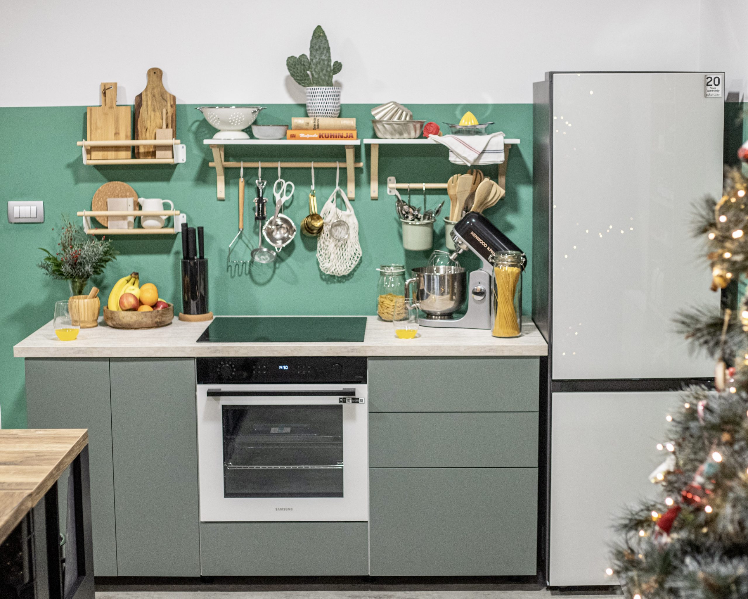 Ako se pak priča o organizaciji kulinarskih radionica, modularnost je i tu moguća na način da svi rade za jednim velikim otokom ili da je svaka jedinica za sebe. Sam izbor modulacije diktira i broj sudionika tako da se on kreće do maksimalne brojke od 8 ili 12 sudionika + voditelj. Sam prostor je opremljen vrhunskim Samsung i Kenwood kuhinjskim uređajima i aparatima koji i vizualno i tehnički čine prostor jedinstvenim.