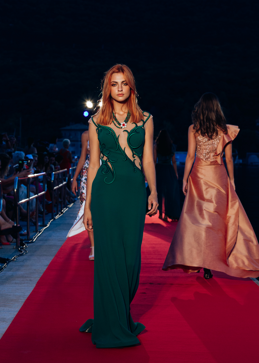 Dizajnerica Đana Ravlić, vlasnica riječkog Sally Ateliera, nadahnuće za svoju kolekciju potražila je u liku Marije Terezije koja je krajem 18. stoljeća Bakar proglasila slobodnim kraljevskim gradom. Đanine kreacije odvele su nas u koloplet dugih odora, bogatih ukrasa, svile, veza i čipke, prilagođen suvremenom ukusu. Obogaćena nakitom od ohridskih perli iz radionice Delov pearls & jewelery by Mimi Delov, kolekcija je, ukratko, predstavljala pravi melem za oči.