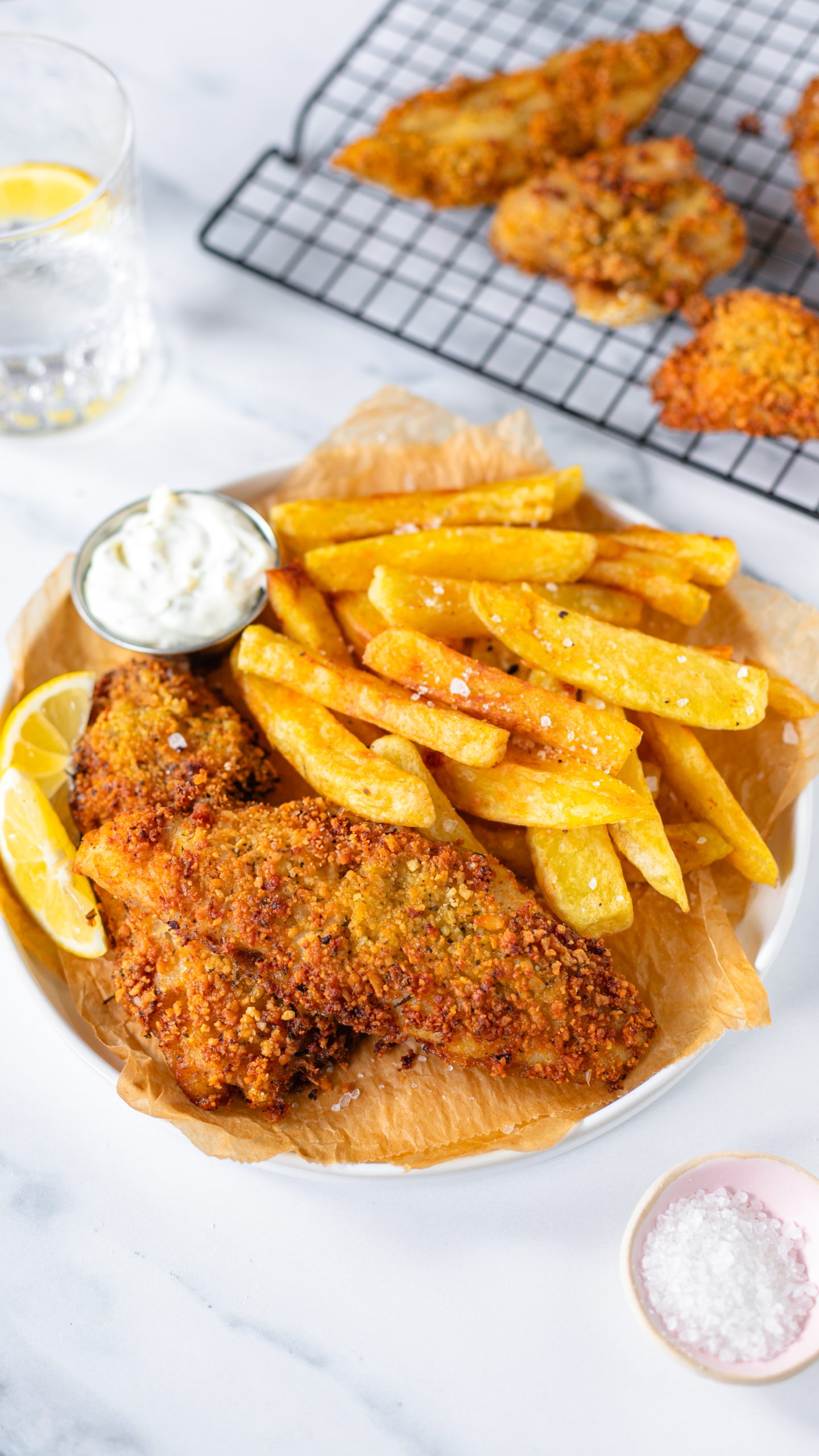 - Poslužite krumpiriće uz prženu ribu, krišku limuna i tatarski umak.