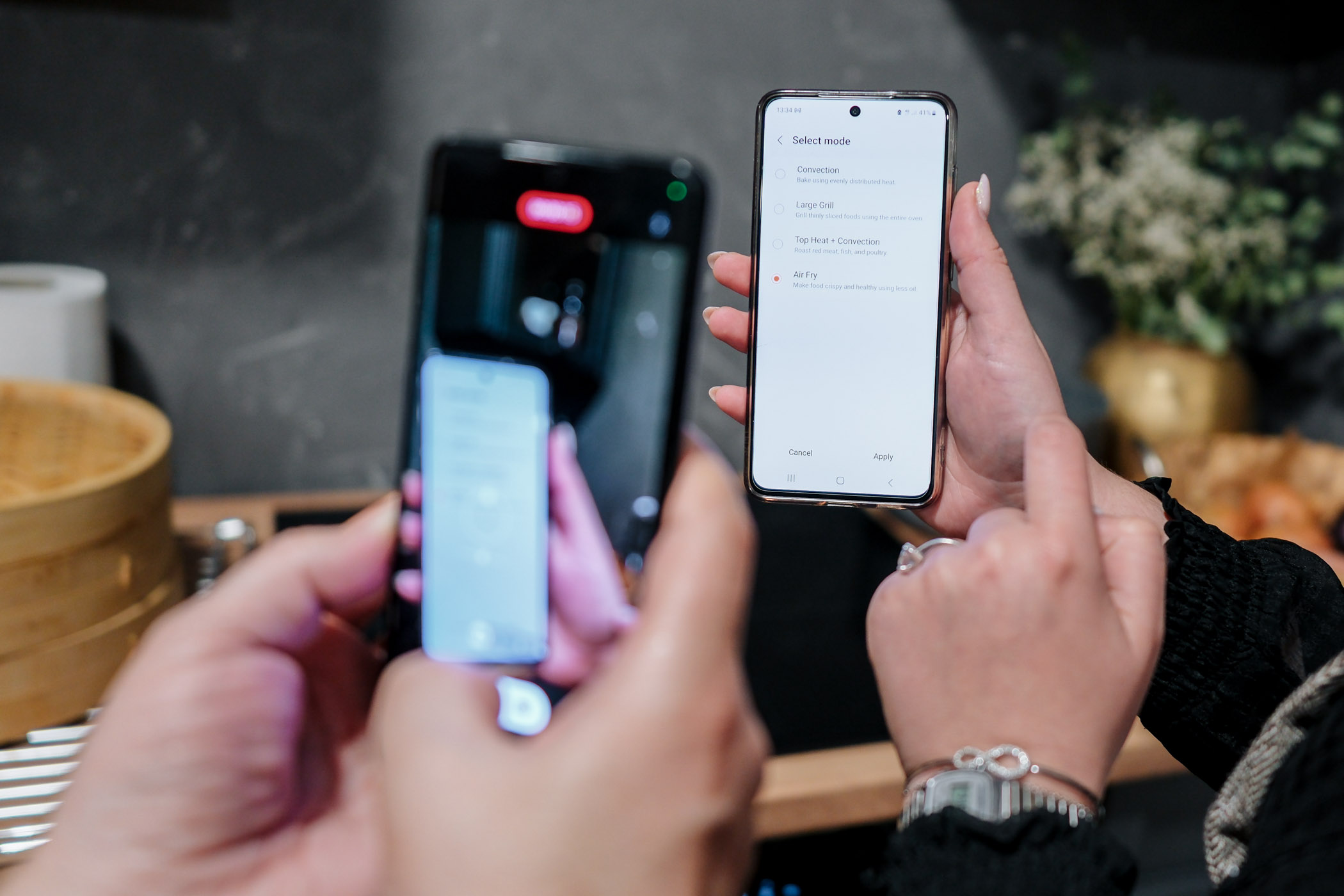 Tehnologija kuhanja i pečenja uz pomoć vrućeg zraka dostupna je u samoj pećnici, što znači da nema potrebe za dodatnim uređajima koji nepotrebno zauzimaju mjesto u kuhinji, a termometar koji je i više nego potreban za kontrolu optimalne temperature, također se nalazi u samoj pećnici. Također, Dual Cook Flex Steam revolucionarna je značajka koja omogućava podjelu kuhanja i time osigurava veću produktivnost, uz kuhanje na pari koje hranu čini sočnom. Ove značajke posebno su došle do izražaja baš kod pripreme piletine koja je bila gotova u trenu uz funkciju AirFry, dok je para bila zaslužna za mekanu i podatnu teksturu bao peciva.