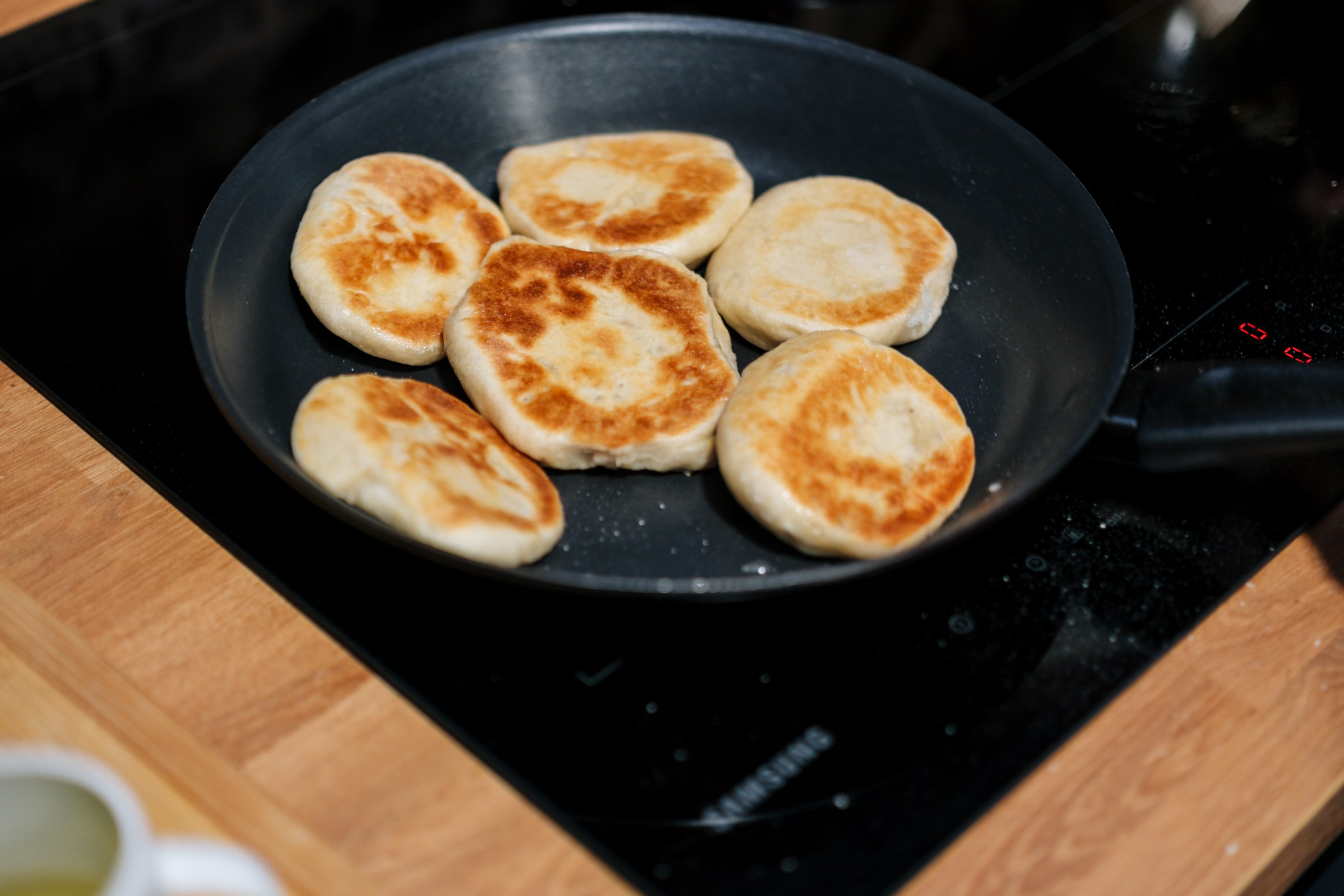 Nakon zabavne pripreme glavnog jela, koja se odvijala u paru, krenuli smo s pečenjem. Glavno jelo su bili bao buns, u koji je išla ukusna piletina sa sezamom i slatko kiselim umakom uz dodatak povrća. Piletinu smo nakon pripreme pekli u Samsung pećnicama koje imaju AirFry i Air Sous funkciju koja za pripremu jela koristi vrući zrak i tako se koristi manja količina ulja i sama priprema jela je zdravija. Istu stvar smo koristili i za pripremu bunsa, a izašli su topli i mekani iz pećnice. Ono što je najbolje, pećnica ima mogućnost da se sama očisti, ne možete reći da ipak želite kuhati malo više nego prije nakon ove spoznaje? 🙂 Za desert smo pripremali Hotteoka, palačinke koje smo napunili ukusnim punjenjem od cimeta, šećera i oraha. Obzirom da smo ih zamotali, ove mini palačinke su bile veoma zanimljivog okusa.