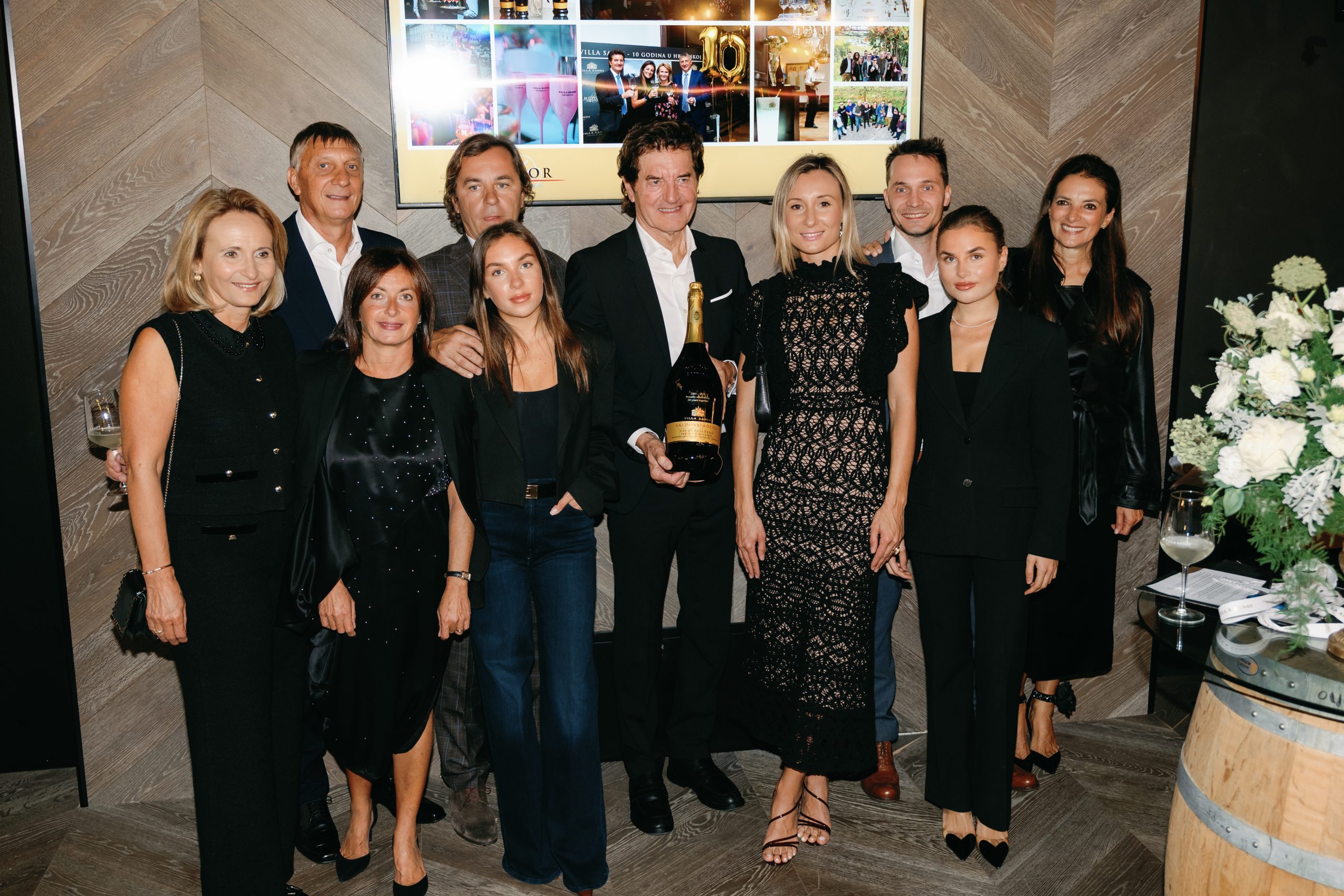 Iz tog su se razloga 16. listopada u prostoru MIVA Bistro & Wine bara okupili brojni ugostitelji, vinski znalci i novinari, vlasnici Mohor-Trgovine i MIVA Galerije vina, Gordan Mohor i Vlado Šušak ali i sami vlasnici vinarije, Augusta Pavan Moretti Polegato i Giancarlo Moretti Polegato. Uzvanicima je kao aperitiv poslužen Villa Sandi Il Fresco DOC Rosé Millesimato Brut 2024, jedan od prvih rose prosecca nastao 2020. godine kada je konzorciji Prosecco DOC objavio nadopunu pravila apelacije, a zatim su talijansko Ministarstvo poljoprivrede i Nacionalni odbor za vino prihvatili odluku o proizvodnji Prosecca DOC Rosé. Uz hranu gosti su kušali Valdobbiadene Prosecco Superiore DOCG Millesimato Brut 2024 te friulano, pinot grigio i merlot vinarije Borgo Conventi iz Collia koja je također u vlasništvu Ville Sandi. Za kraj večere svi uzvanici nazdravili su s Valdobbiadene Superiore di Cartizze DOCG La Rivetta čije grožđe dolazi s najkvalitetnijeg i najpoznatijeg položaja za uzgoj prosecca.