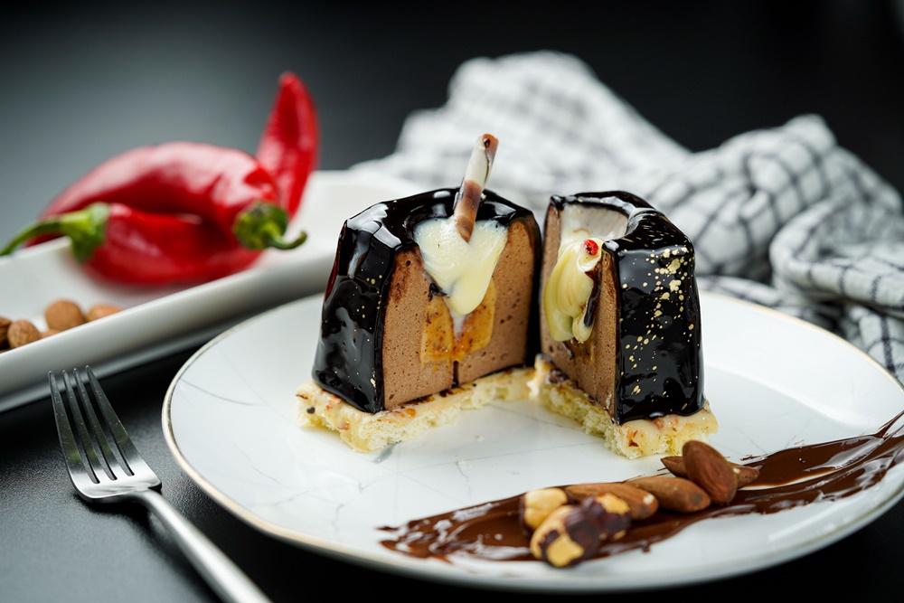 Iako je zima hladno i tmurno godišnje doba, njen kockasti predstavnik od kombinacije čokoladnog mousse-a s čilijem, inserta od lješnjaka i nezaobilazne karamele, završen s bijelom čokoladom i suhim paprom na vrhu, podiže raspoloženje nakon samo nekoliko trenutaka od prvog griza.