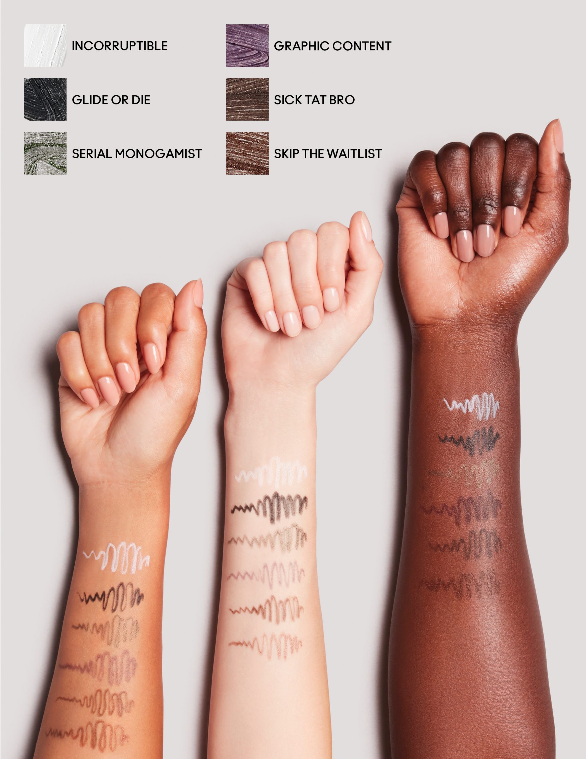crtanja grafičkih oblika na kapcima ili dodavanja nježne boje linijama trepavica.” Postoji nijansa za svaki dan, svaki način i svako raspoloženje – od električnih naglašenih boja do preciznih zemljanih tonova. “Primjena je jednostavna, ali odlučiti između tolikog izbora boja je teško! Postoje mogućnosti za svakoga da izrazi svoju kreativnost ili samo poboljša boju svojih očiju”, kaže Sapin.
