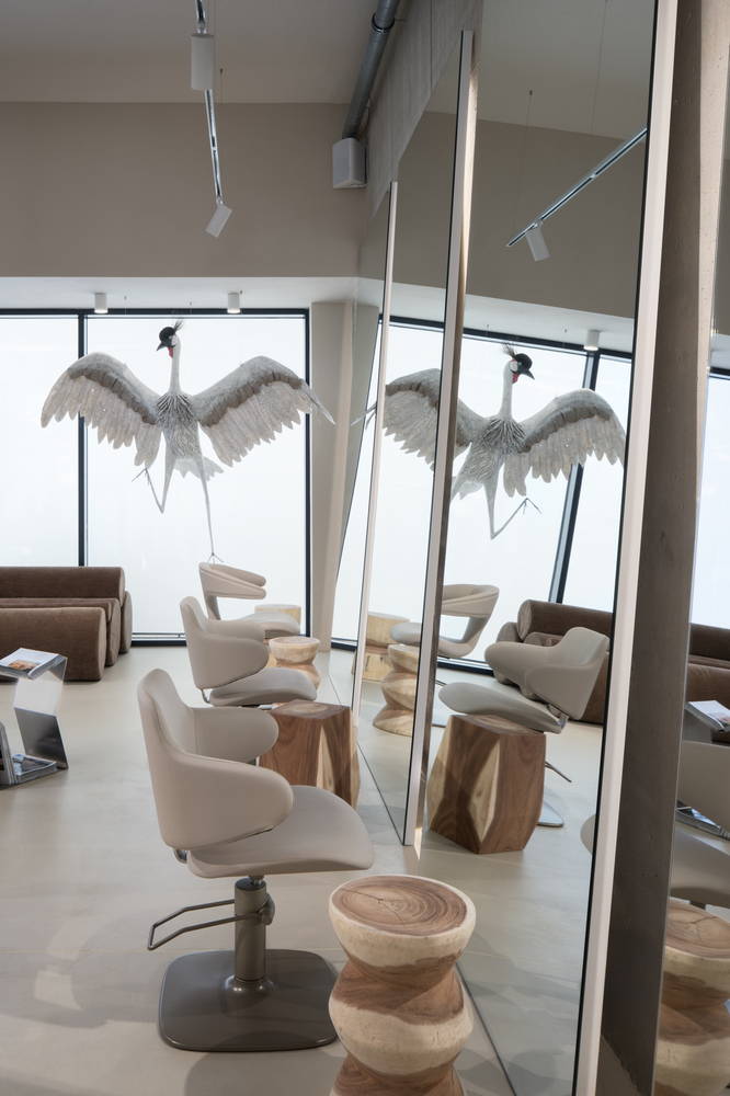 Poseban pečat interijeru daju ždralovi akademskog umjetnika Karla Risa, simbolizirajući dugovječnost i transformaciju, odnosno vrijednosti koje se prirodno nastavljaju na filozofiju salona.