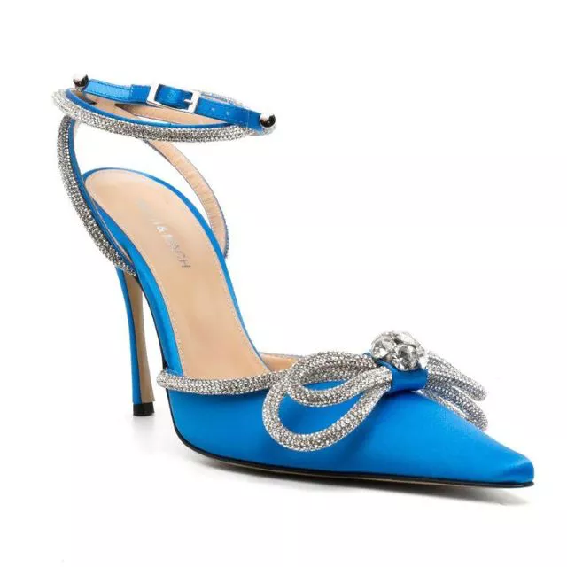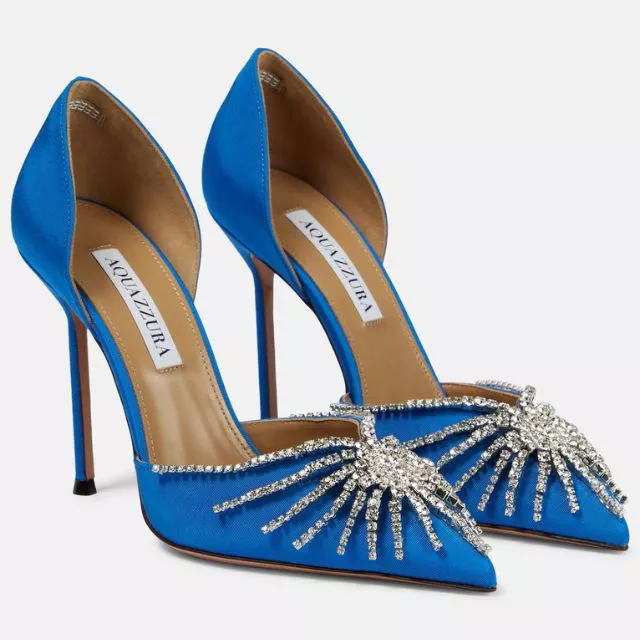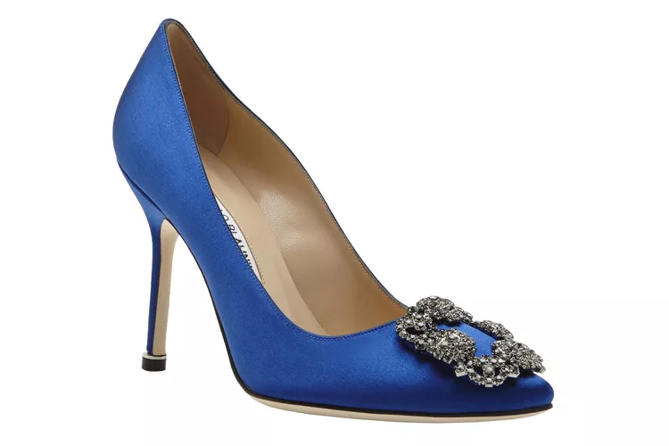 Model “Hangisi” brenda Manolo Blahnik ima siluetu sa špicastim prstima i kristalnim ukraom na vrhu, a savršeno utjelovljuje Carrien ultra-glamurozan stil. Za veliki dan, odlučila ih je upariti s opuštenijim kompletom za svoje vjenčanje, noseći ih s bijelim suknja kostimom i jarko žutom clutch torbicom. Od izlaska filma, ove su cipele zaživjele vlastitim životom, a mnogi su brendovi su predstavili svoju verziju popularnog modela.
