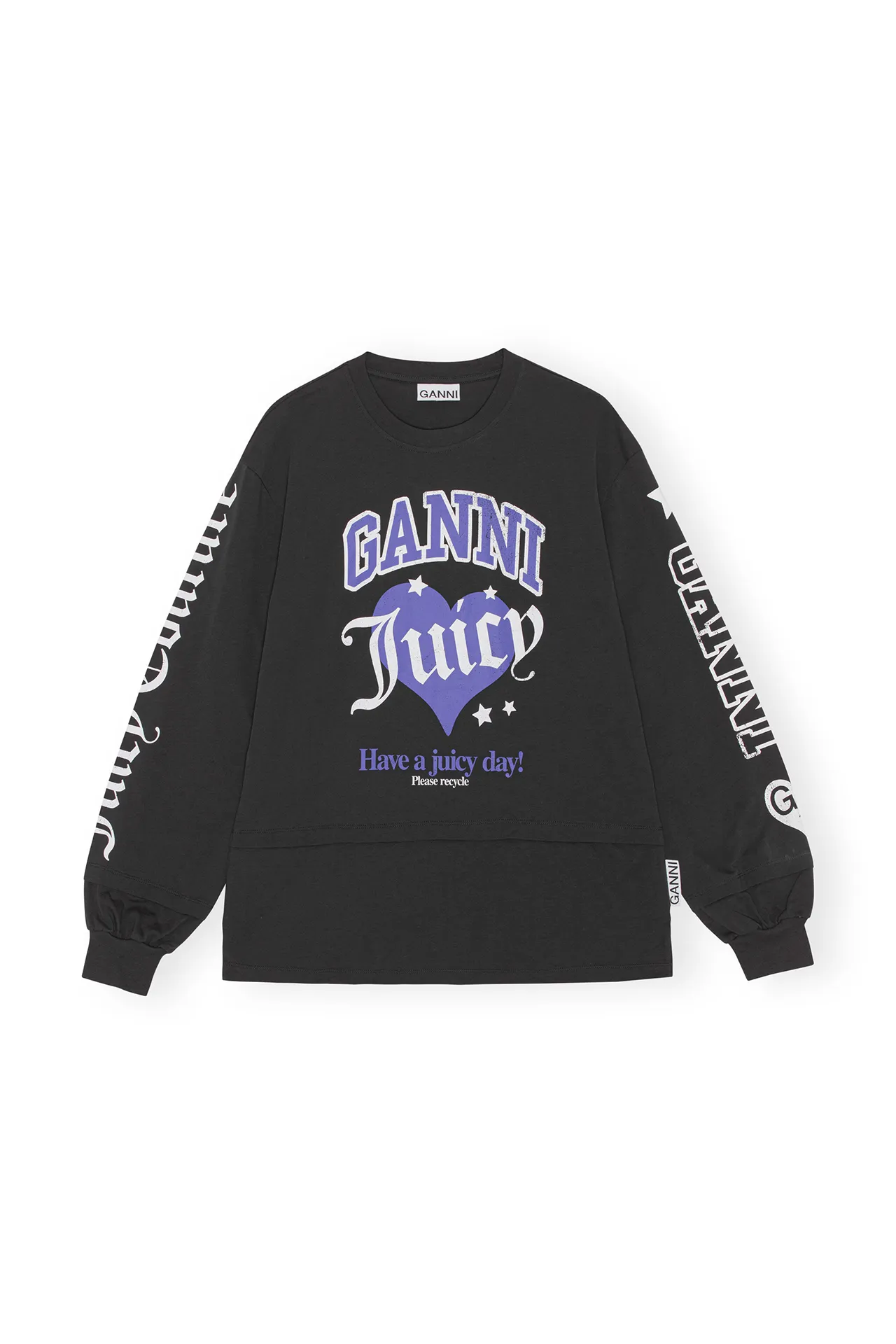 Ganni se udružio s nekad najpopularnijim brendom trenirki na svijetu, Juicy Couture. Kolekcija je spoj dvije generacije modnih brendova koji su predvodnici trendova, Juicy Couture je prije pandemije uvjerio ljude da se u trenirkama može izgledati jako dobor i cool, a Ganni je predvodnik u održivoj modi.