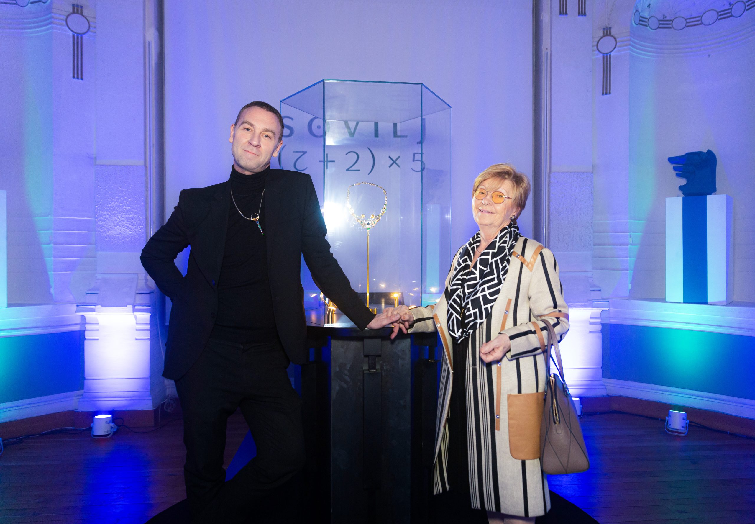 U prostoru zagrebačkog Etnografskog muzeja, pod kupolom njegove oktogonalne dvorane, Nenad Sovilj zaokružio je dvadeset godina umjetničkog rada jednim jedinim objektom – ogrlicom izrađenom od pet plemenitih materijala. Završni događaj izložbe ‘(2 + 2) x 5’ okupio je odabrani krug uzvanika, među kojima su bile i predstavnice diplomatskog zbora – veleposlanica Kanade Jessica Eve Blitt, predstavnica Veleposlanstva Kraljevine Švedske Anna Katarina Boda te predstavnica Veleposlanstva Irske Wendy Dorman-Smith – kao i Martina Bienenfeld, direktorica Turističke zajednice grada Zagreba, u čijoj je organizaciji događaj i održan. Poznati dizajner nakita tom je prigodom predstavio novu, do sada neviđenu kreaciju od zlata, dijamanta, safira, smaragda i zlatnog bisera.