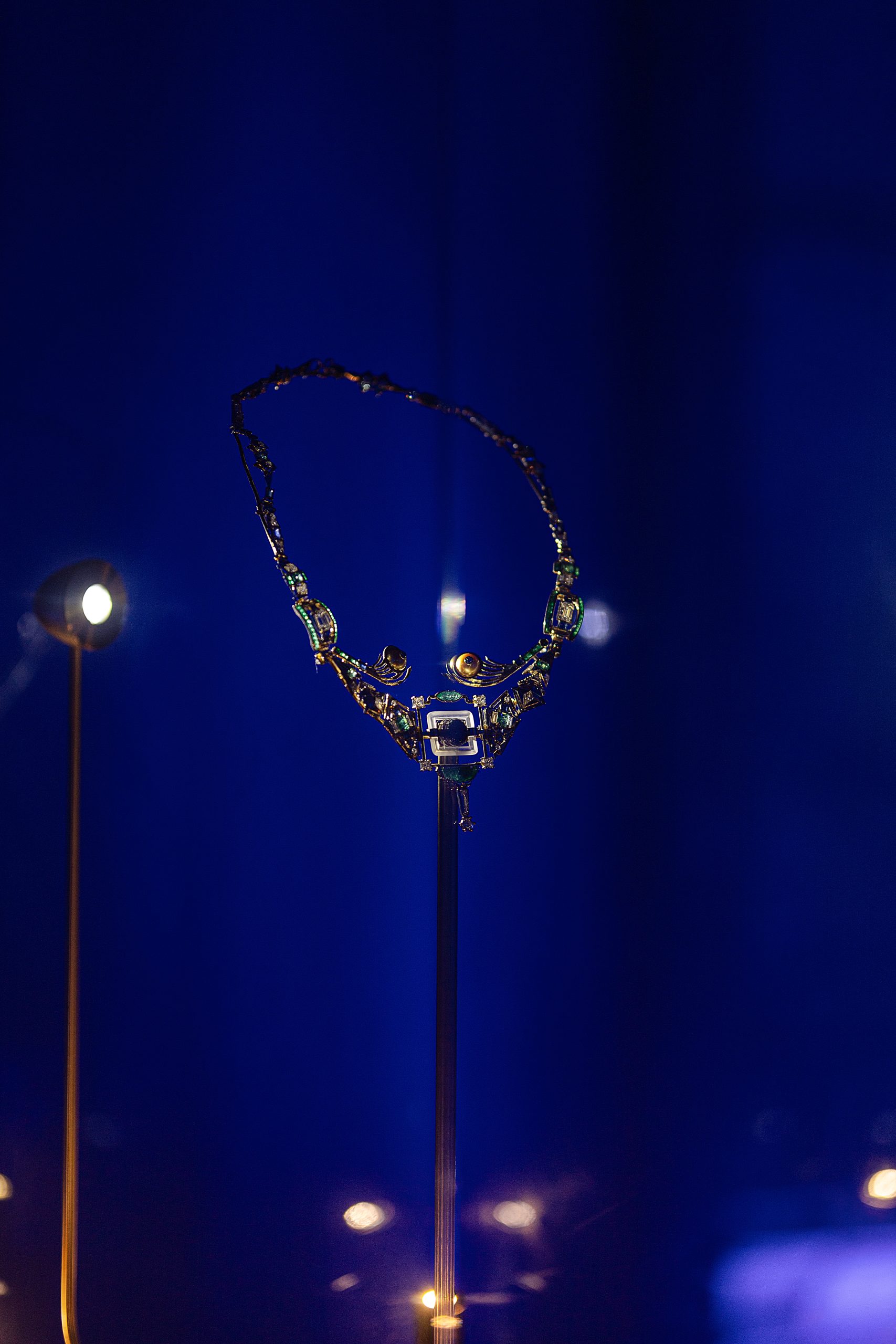 Izložba u Etnografskom muzeju konceptualno je usmjerena upravo na pet materijala od kojih je izrađena ogrlica. Za Sovilja oni nisu tek simbol luksuza, već nose snažna značenja: zlato kao metal kozmičkog podrijetla, dijamant kao kristaliziranu disciplinu materije, safir kao duboku i tihu plavu, smaragd kao ‘vrt u kamenu’, te biser kao dragocjenost koja nastaje u tijelu živog bića.