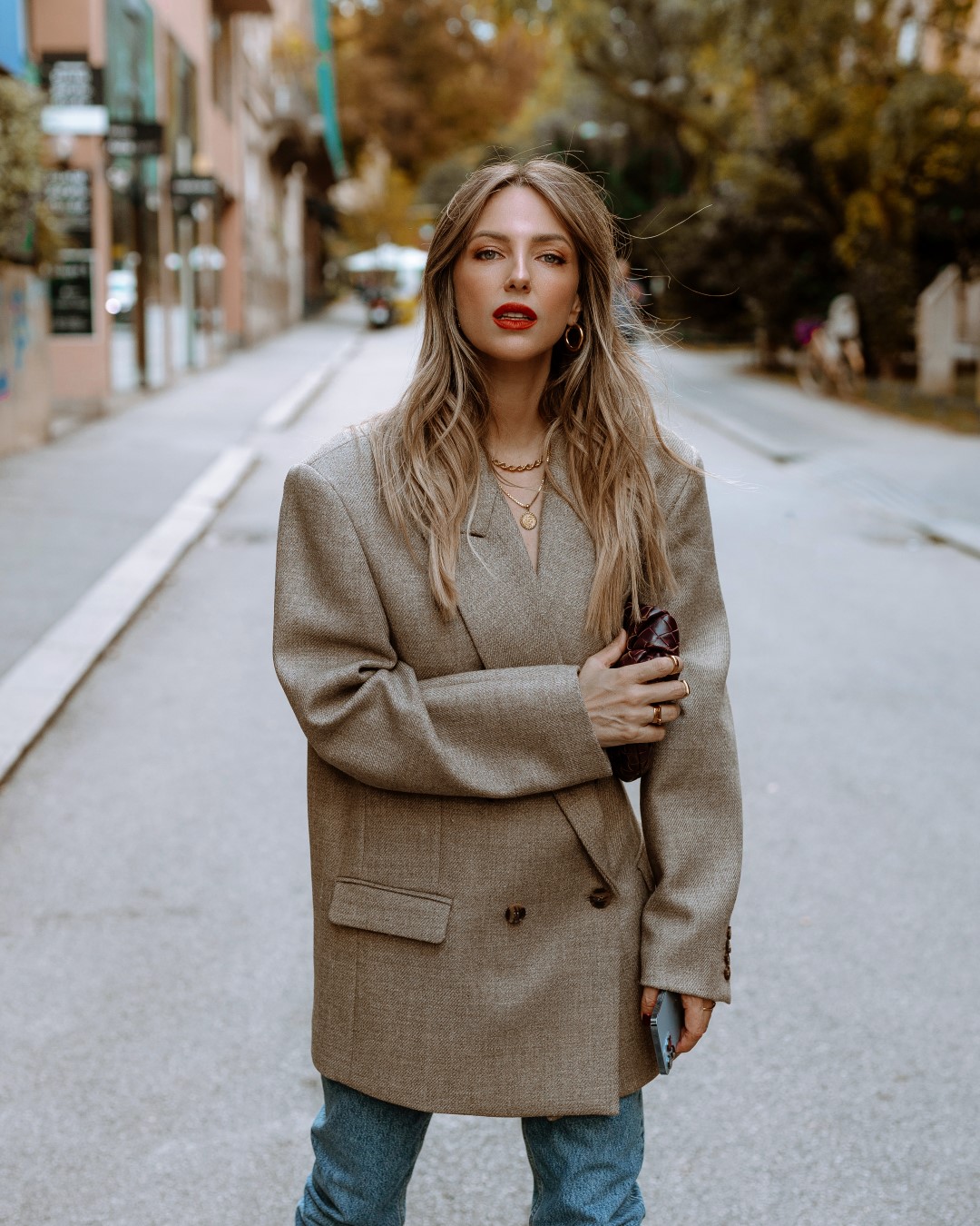 U fashion editorijalu snimljenom na zagrebačkim ulicama pogledajte kako Teuta kombinira nakit sa neizostavnim oversize blazerima, hit modelima traperica, bomber jaknom te vječnim balonerom.
