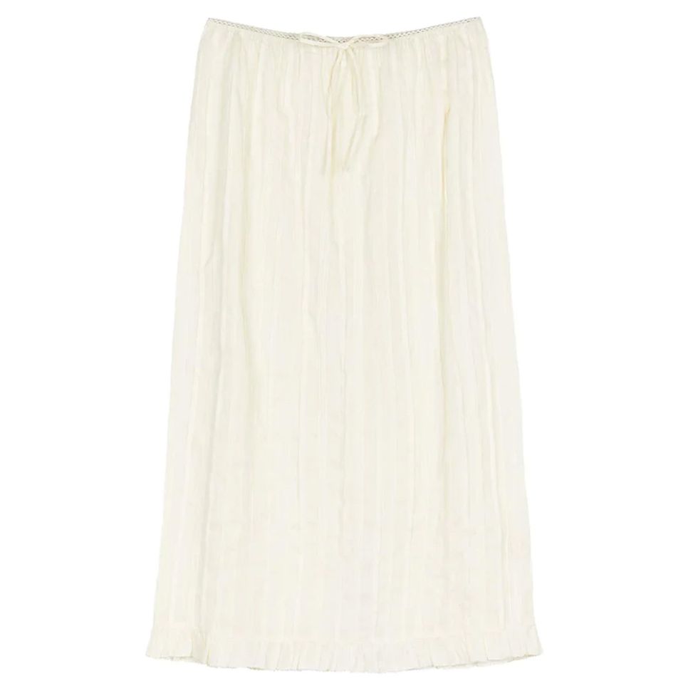 Bieber je također spakirala nježan večernji look za svoje putovanje, koji se sastoji od Dôen odgovarajućeg topa i suknje, njezinih Prada mokasinki, Inès Bressand torbice od rafije i bijele vrpce u kosi.
