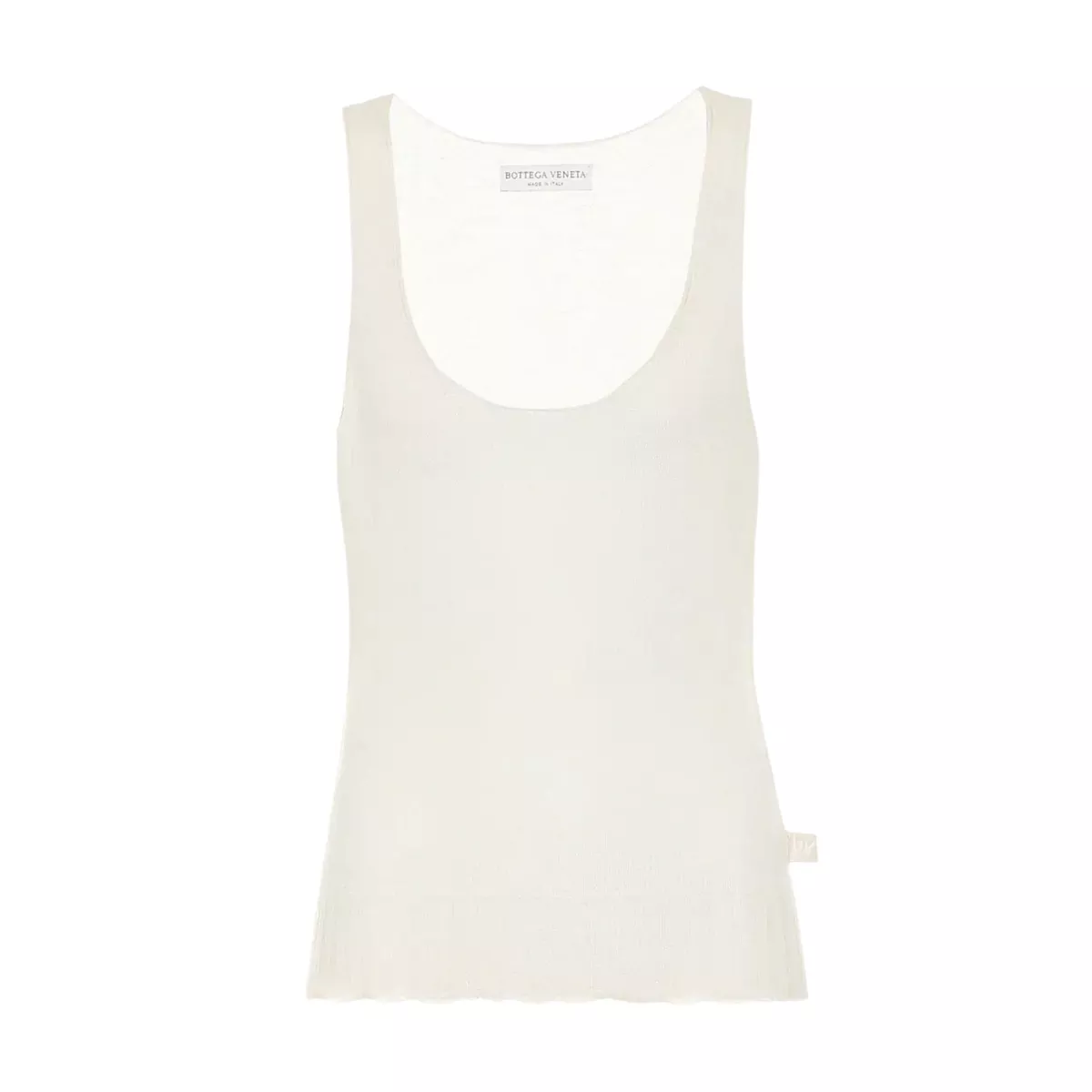 Bijela majica s naramenicama će uskoro doživjeti veliku popularnost, naročito jer je ‘first look’ na reviji Matthieua Blazyja za Bottegu Veneta baziran upravo na bijelom tank topu. Bijela majica bez rukava kombinirana je s kožnim hlačama napravljenim tako da izgledaju kao da su od trapera i bordo torbom. Pradina majica bez rukava više je naginjala logomaniji s plaketom s potpisom marke. Tema logotipa provukla se kroz kolekciju upravo s majicom koja se nosila ispod prozirnih haljina i suknjama.