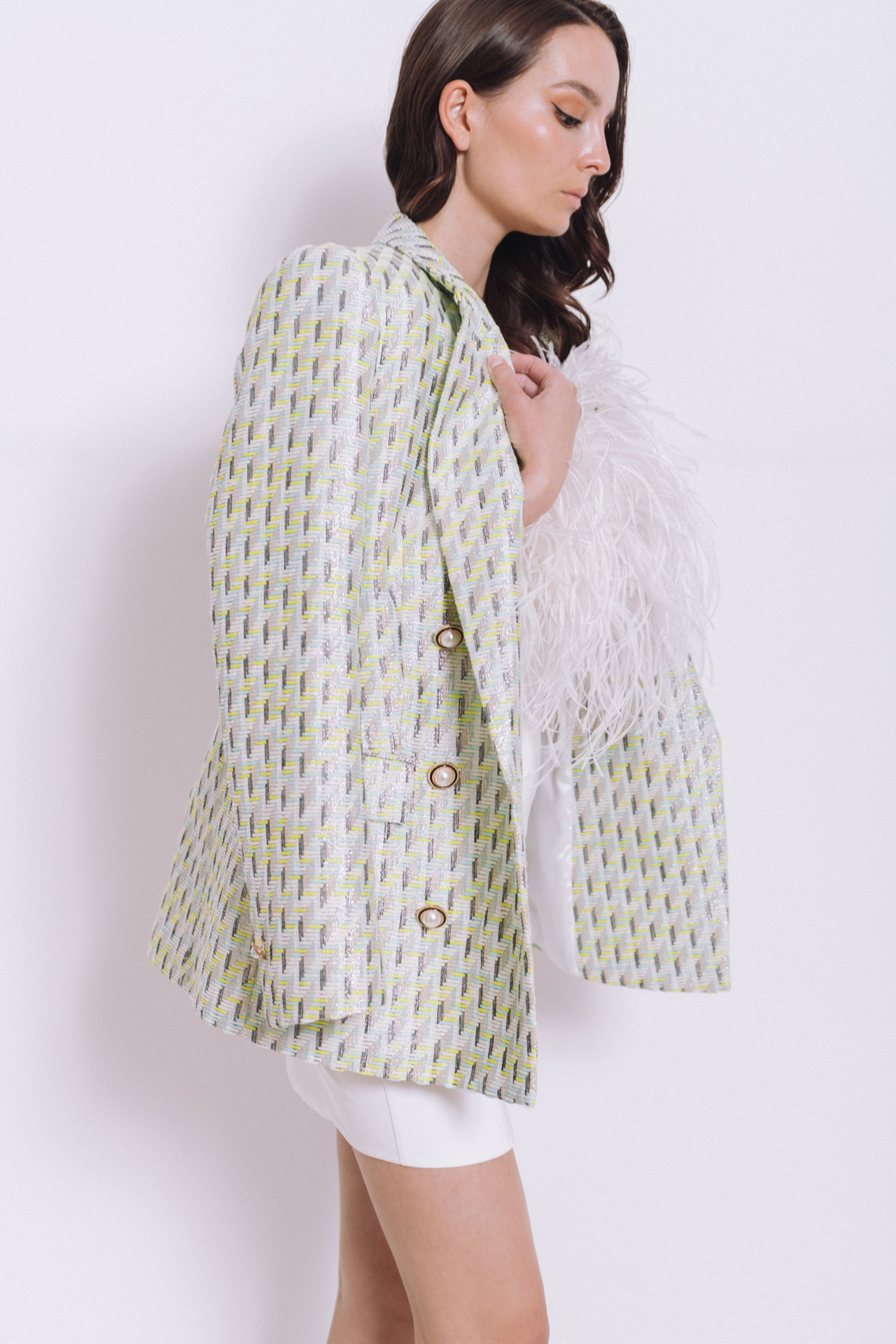 Obožavateljice poslovne elegancije u ELFS novoj kolekciji pronaći će nekoliko modela i uzoraka klasičnih blezera na dvoredno kopčanje u različitim dezenima i materijalima. Mogu birati između sivih kariranih, od tvida, pepita uzoraka ili pak svečanije varijante od sjajnog brokata.