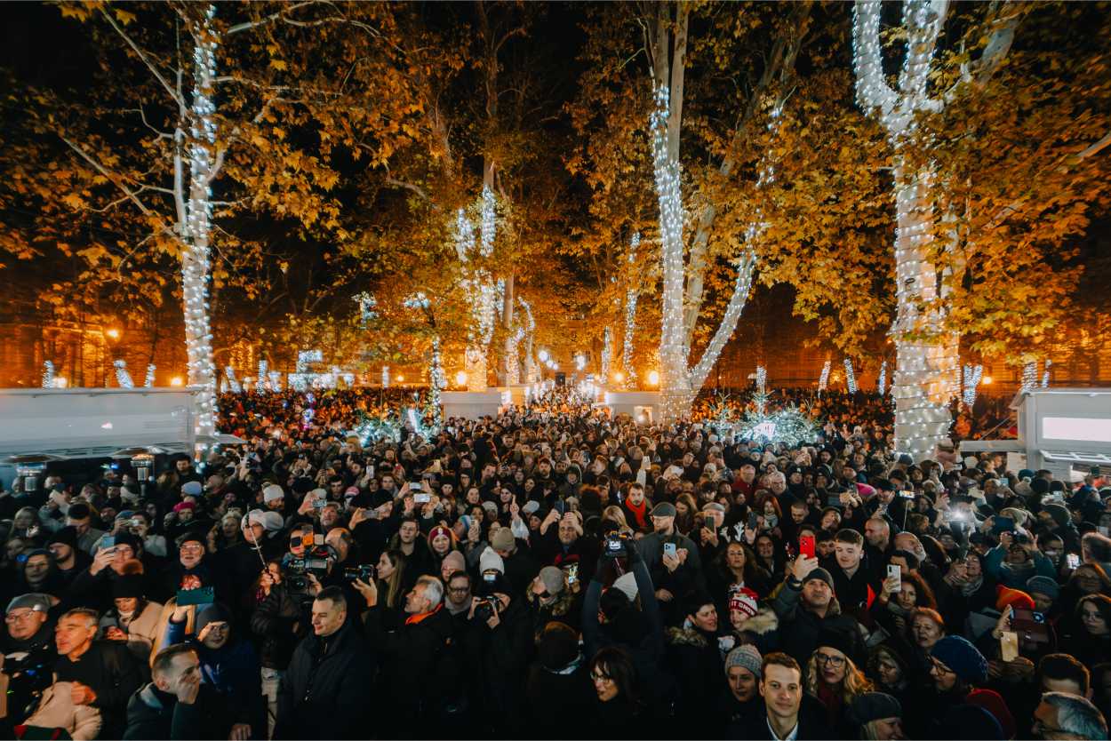 Samo nekoliko koraka dalje, Zrinjevac nudi klasičnu zagrebačku božićnu čaroliju koja je nadahnuta svjetskim adventskim sajmovima, ali duboko ukorijenjena u lokalnu tradiciju i estetiku. U parku vas očekuje 12 ugostiteljskih i 20 trgovačkih kućica, u kojima se mogu pronaći proizvodi lokalnih OPG-ova, slatki i slani blagdanski specijaliteti, rukotvorine i suveniri. Srce ove čarolije je najljepša glazbena scena na otvorenom – Glazbeni paviljon, prepoznatljiva znamenitost Zagreba od 1891. godine, djelo arhitekta Hermanna Bolléa i ‘simbol zagrebačke gradskosti i kulture življenja’.